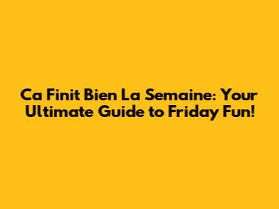 Ca Finit Bien La Semaine: Friday Fun & Entertainment!