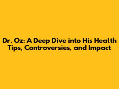 Dr. Oz: Health Tips, Controversies, And Impact