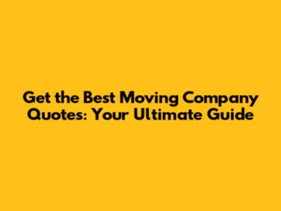 Get The Best Moving Company Quotes: Your Ultimate Guide