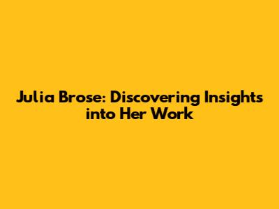 Let's dive into the world of Julia Brose! In this article, we'll explore her background, work, and the impact she has made. Whether you're already familiar with her or just curious, this is your go-to resource for understanding who Julia Brose is and what she does.