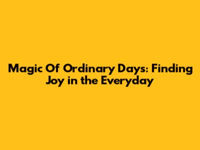 Magic Of Ordinary Days: Finding Joy In The Everyday