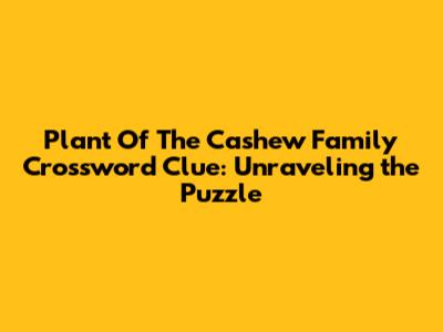 Hey there, crossword enthusiasts! Ever stumbled upon the "Plant of the Cashew Family" clue and found yourself scratching your head? You're definitely not alone! This seemingly simple clue can be surprisingly tricky, often leading to a frustrating halt in your crossword-solving journey. But fear not, guys! We're here to crack the code and provide you with all the insights you need to conquer this clue and impress your friends with your botanical crossword prowess. So, let's dive deep into the world of cashews and explore the plant family they belong to, making sure you're armed with the knowledge to solve this clue with confidence. Remember, crosswords are not just about knowing the answers; they're about the journey of discovery and the thrill of connecting seemingly disparate pieces of information. And who knows, you might even learn a thing or two about botany along the way!