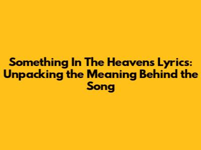 Something In The Heavens: Deep Dive Into The Lyrics
