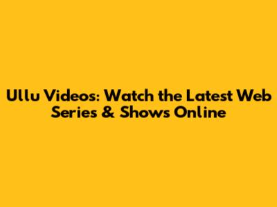 Ullu Videos: Watch The Latest Web Series & Shows Online